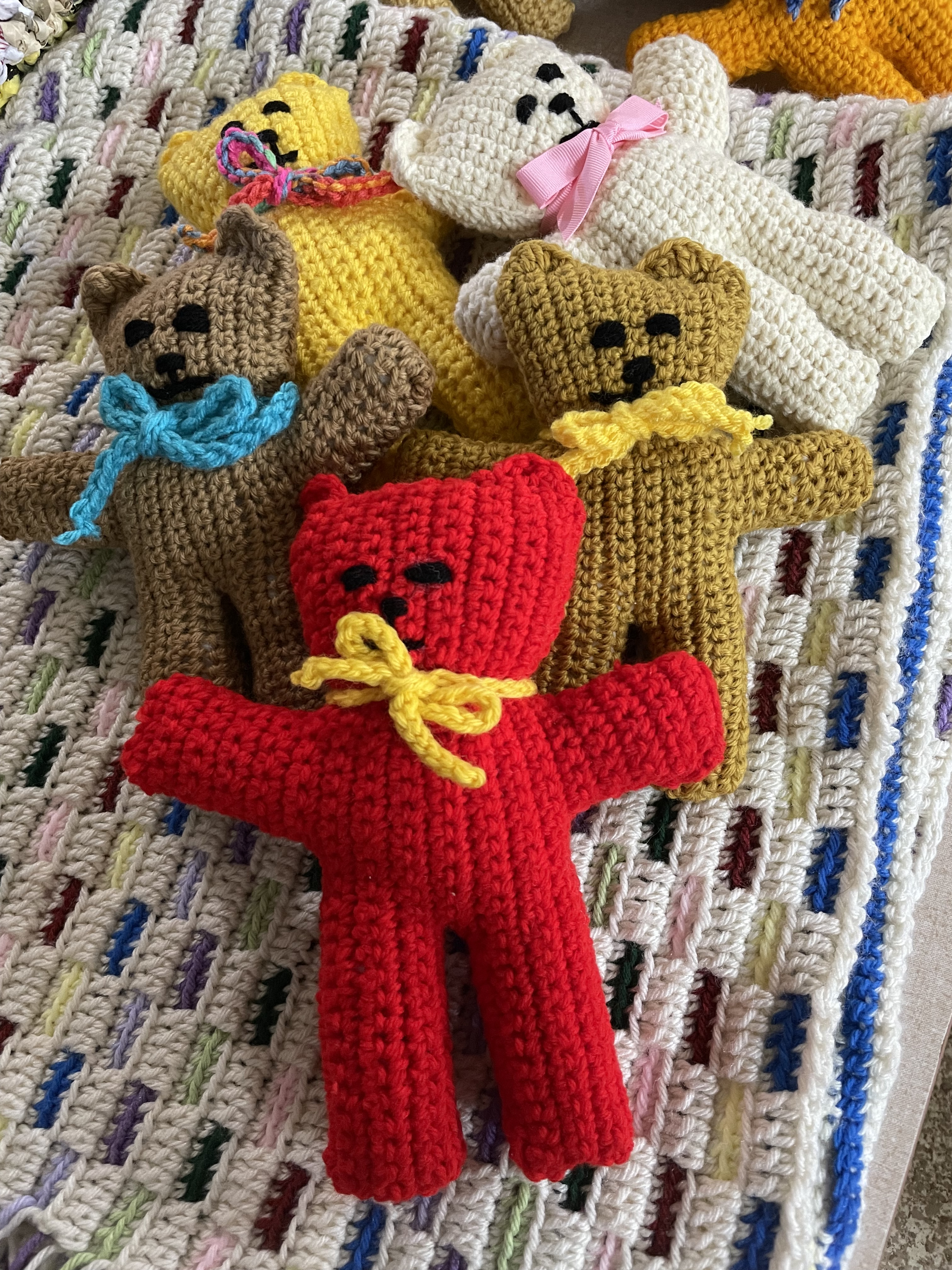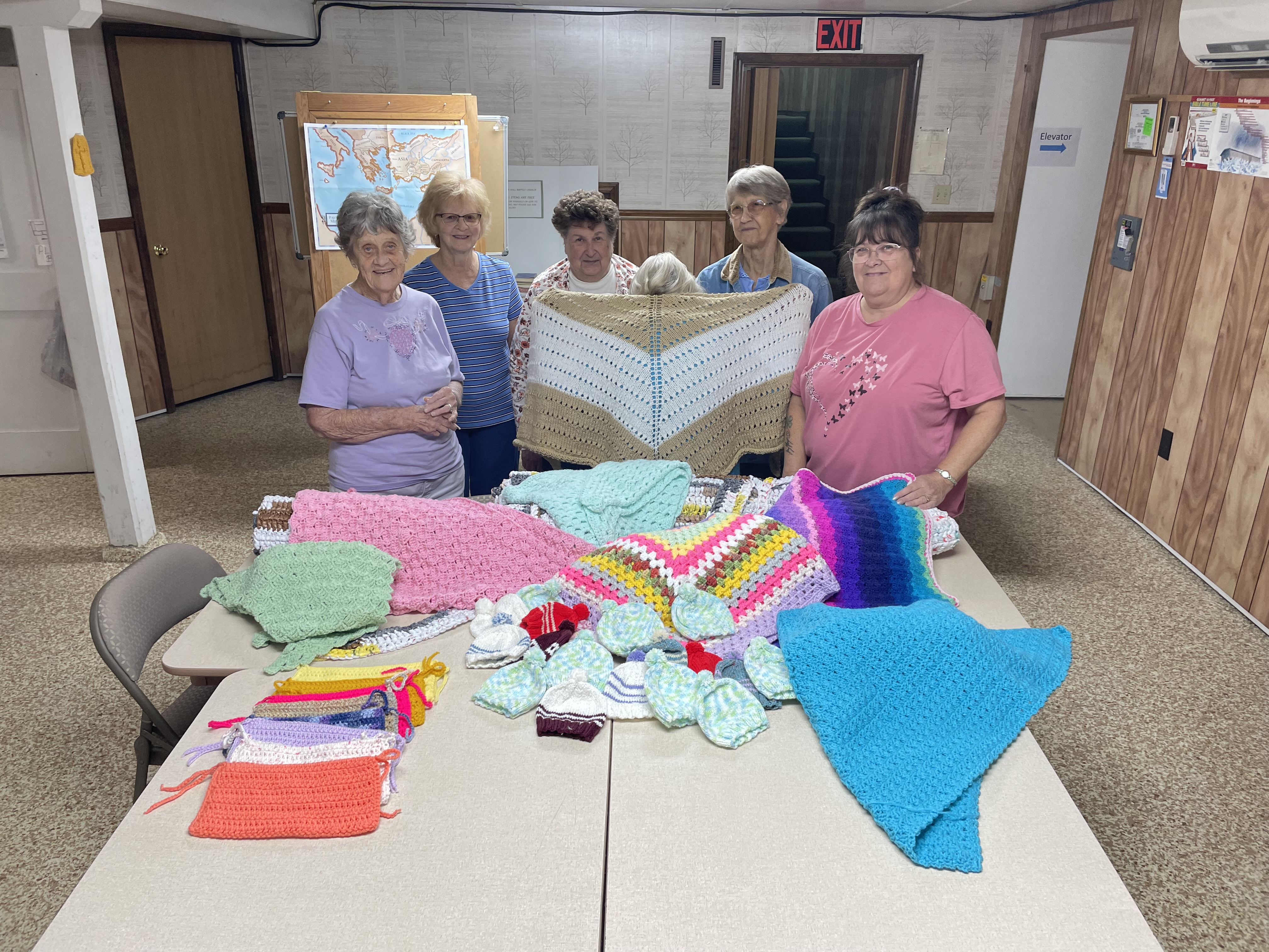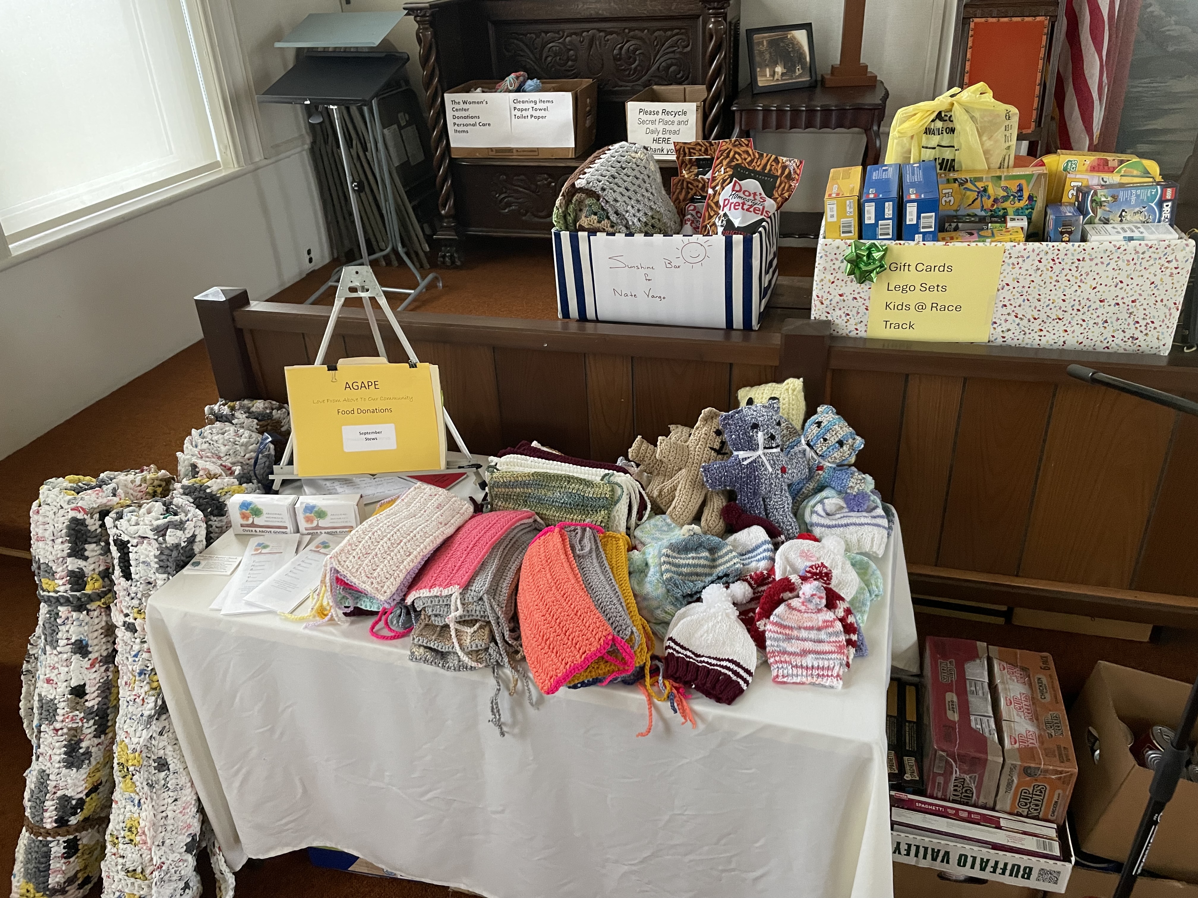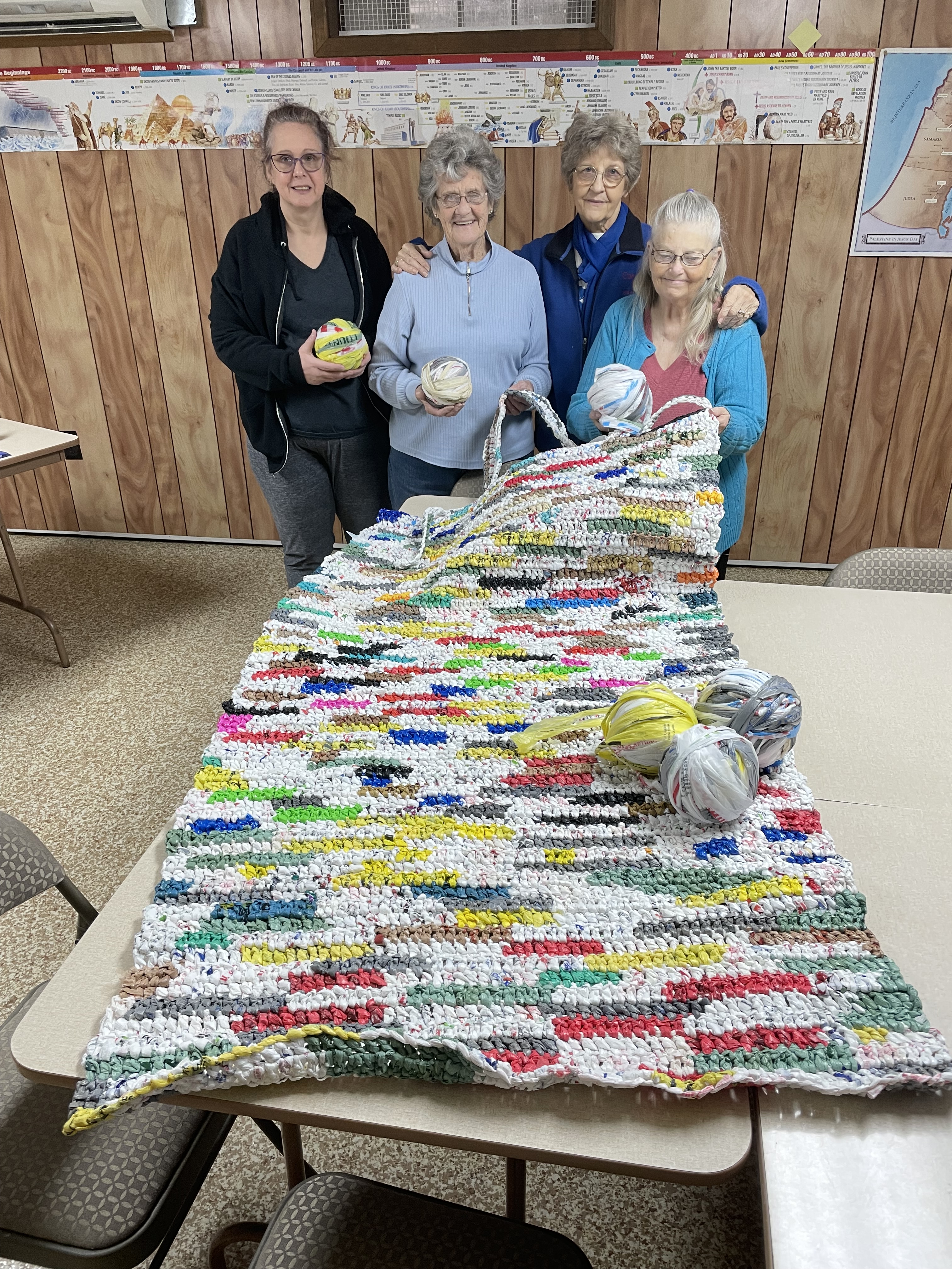The Crochet Circle is a group of women gathered around the skills of crocheting, and other handcrafted textile work. This activity grew out of a common interest and has become a ministry in its own right. The Crochet Circle members produce afghans, blankets, and etc. and gives them away to home-bound folks. They have also partnered with other local Christian churches to provide sleeping mats made from plastic grocery bags for those experiencing homelessness. Below are just some of the things the ladies have made.
